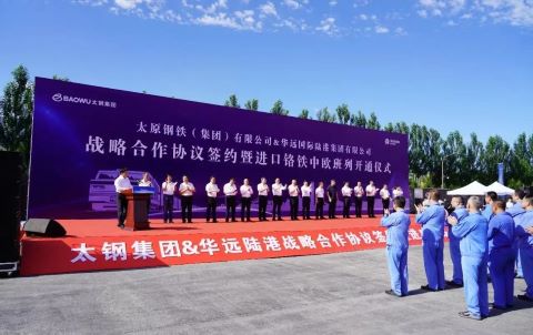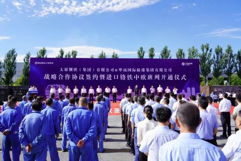 7月17日,一列满载110个集装箱约3000吨铬铁合金的中欧(亚)班列,缓缓驶入太钢采购中心仓储作业区站台线。太钢集团与华远陆港战略合作签约暨进口铬铁中欧班列开通仪式隆重举行。这是太钢集团与华远国际陆港集团合作开通的首趟进口铬铁中亚回程班列,标志着太钢集团与华远陆港战略合作正式落地。此举是中央企业和地方国企深度合作推动物流降本增效的务实举措,更是践行国家 “一带一路” 倡议、推动内陆地区对外开放能级提升的生动实践。