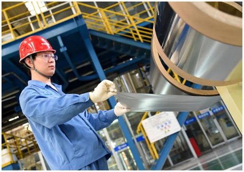 太钢干部职工清晰地记得,2020年5月12日,习近平总书记来到山西太钢不锈钢精密带钢有限公司考察调研,在轰鸣的车间,总书记拿起一片“手撕钢”仔细察看,用手指轻轻扭折了一下,称赞道:“工艺确实好,就像锡纸一样薄,百炼钢做成了绕指柔。”在生产车间门口,总书记同职工代表亲切交流:“希望你们再接再厉,在高端制造业科技创新上不断勇攀高峰,在支撑先进制造业方面迈出新的更大步伐。”这是太钢人引以为豪的一幕,也是创新中国的生动案例。