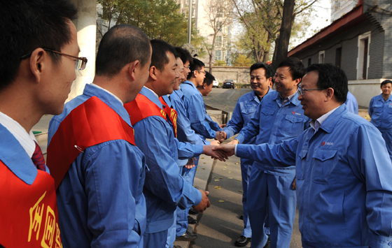 在公司主楼前,公司董事长李晓波等与获奖选手一一握手、热情交谈,详细询问他们参赛和工作情况,感谢大家为太钢争得了荣誉。随后,公司领导高兴地与选手和教练团队合影留念。