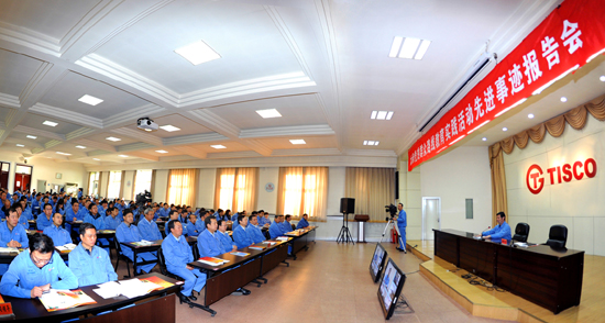 10月25日,太钢举行党的群众路线教育实践活动先进事迹报告会,不锈冷轧厂轧机班长牛国栋,能源动力总厂项目经理韩森,房地产开发公司能动工段环卫班司机韩威,工程管理部副部长李瑜厚,岚县矿业公司党委书记、经理米子军先后做先进事迹报告。