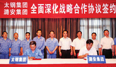 李晓波说,潞安集团有着光荣的传统和深厚的文化底蕴,是一个精于管理、勇于创新的企业。站在新的历史时期,潞安集团以煤为基,多元发展,走在了全国煤炭行业的前列,是太钢学习的榜样。近年来,潞安集团作为国内重要的环保动力煤生产基地和国内最大的烟煤、喷吹煤生产基地,助推太钢喷煤技术行业领先,支持不锈钢在煤炭领域广泛应用;太钢作为全球最大、工艺技术装备水平最高、品种规格最全的不锈钢企业,近年来加快调整产品结构,加大科技投入,致力于为行业提供安全可靠、经济适用的金属材料,助推我国煤炭及煤化工装备的升级换代。太钢将以此协议的签署为契机,加快研发和生产煤炭及煤化工行业所需优质不锈钢材料,助推潞安集团转型发展。希望双方紧密合作,为各自企业发展提供动力,为全省经济“止缓、回稳、促增”作出贡献,结出硕果。