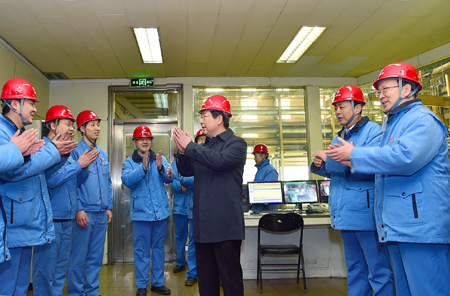 2月4日上午,在新春佳节即将来临之际,省委副书记楼阳生来到太钢,看望慰问生产一线的干部职工,勉励太钢继续发挥好排头兵作用,加快改革创新和转型升级步伐,为全省经济社会发展再作新贡献。太钢董事长、党委书记李晓波,集团公司总经理高祥明一同慰问。