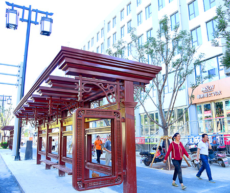 图为改造后的太原市五一路上,古色古香的公交候车亭成为一道风景。 白治斌 摄
