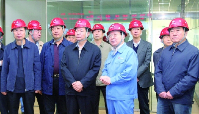 姜新文一行察看了4350立方米高炉和不锈钢冷连轧生产线,参观了技术中心展厅。