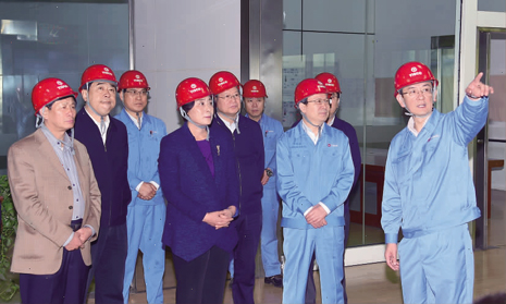 图为调研组一行在炼铁厂调研。 白治斌 摄